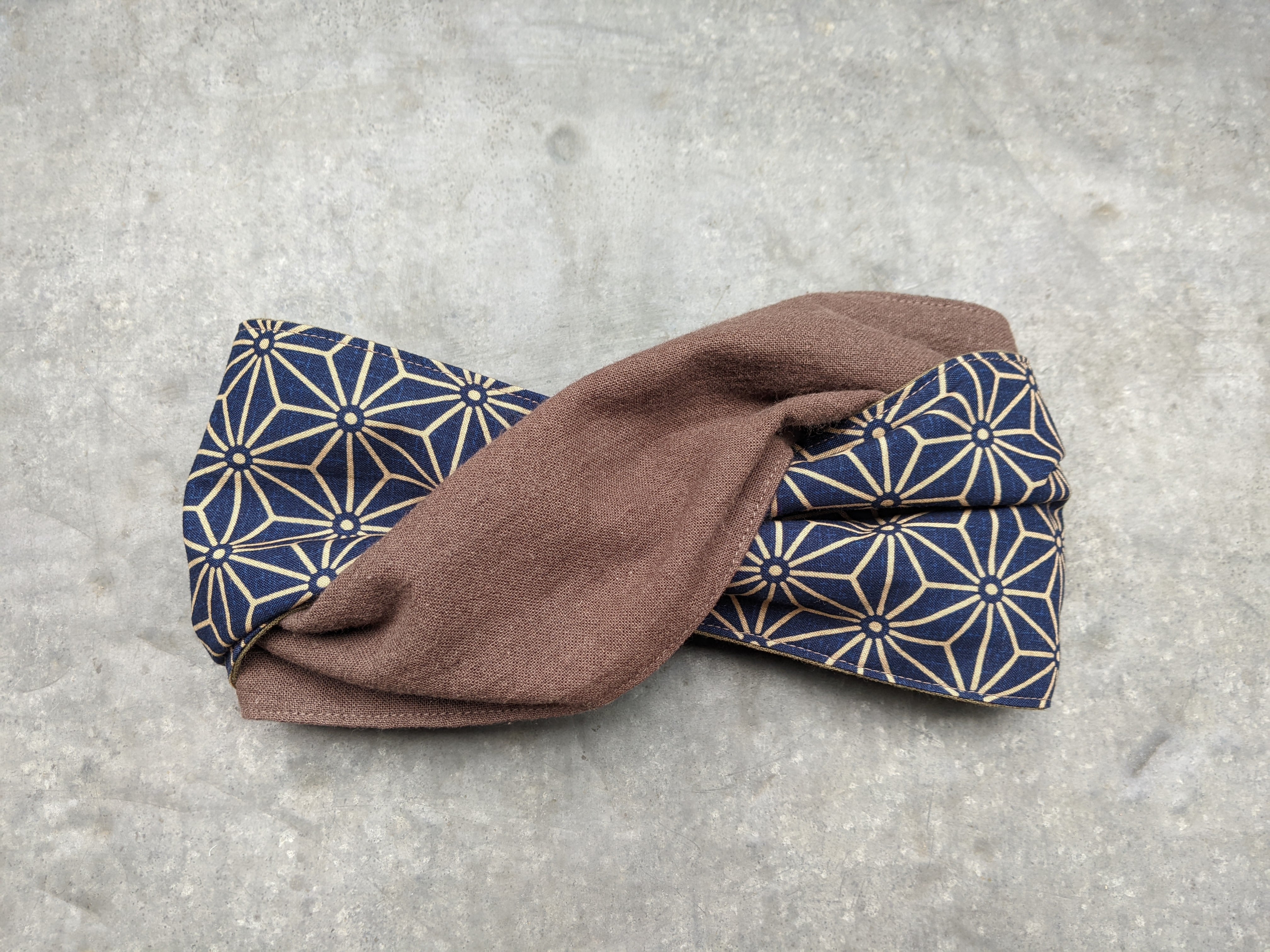 麻柄リバーシブルヘアバンド(麻×brown/navy×Khaki)