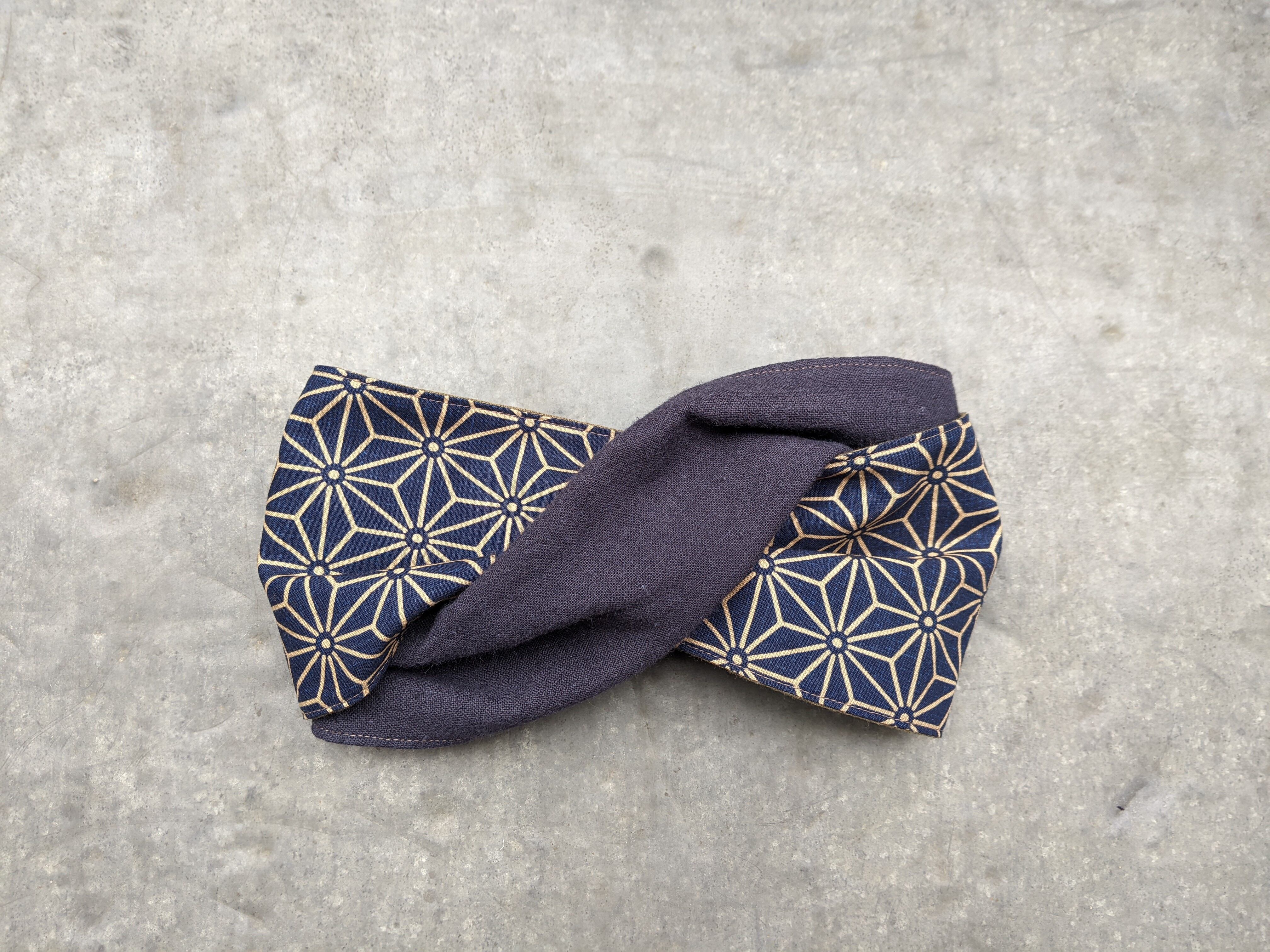 麻柄リバーシブルヘアバンド(麻×navy/Khaki×brown)