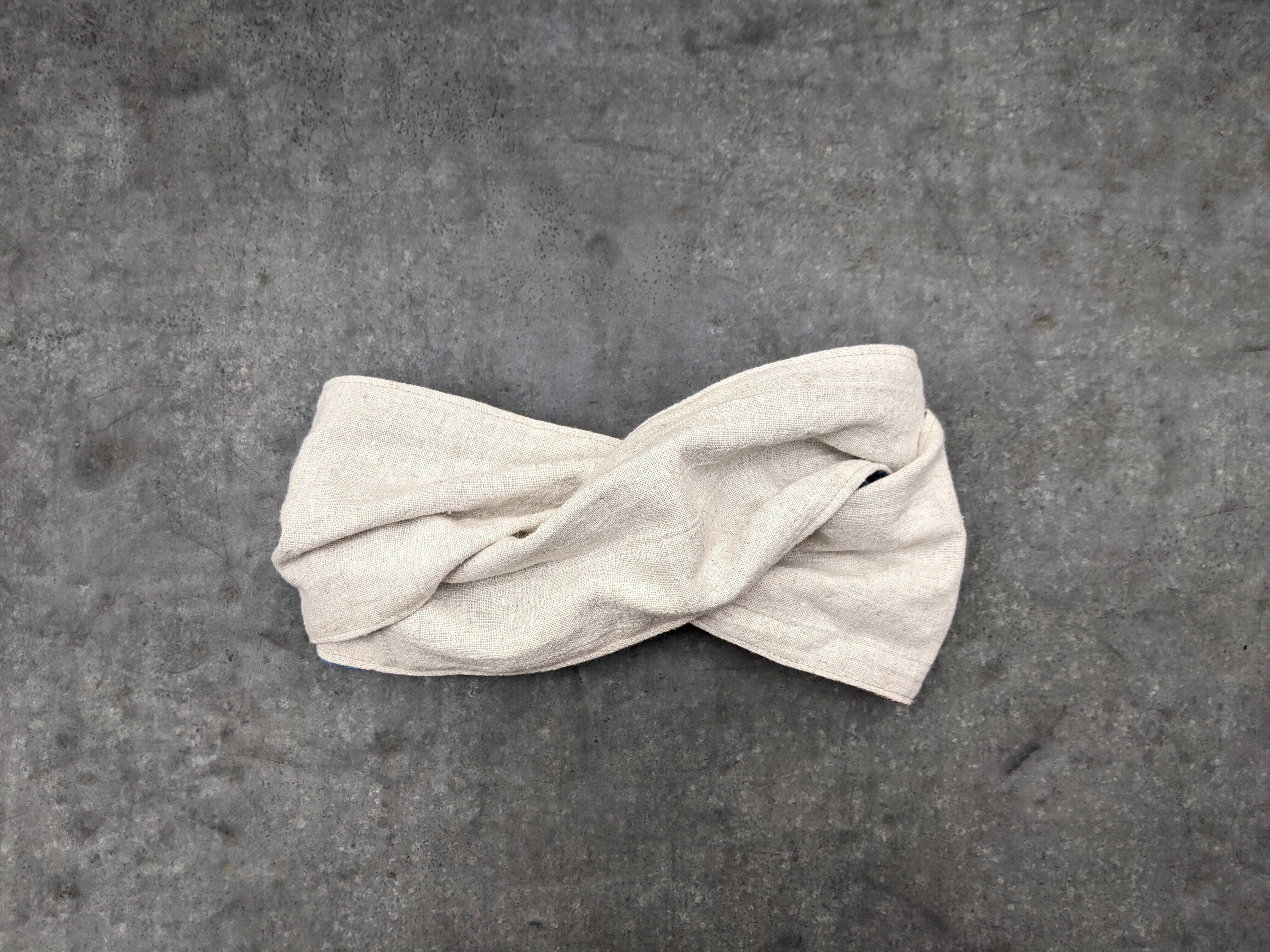 麻柄リバーシブルヘアバンド(indigo×BE麻/white)